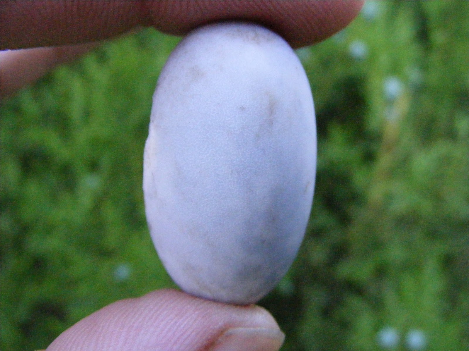 Gondoltam megnézem valóban a teknős készítette hely-e és,ha az akkor a vakond nem e tett kárt benne.Finoman hozzákezdtem a fészeknek vélt hely kibontásának.Úgy 8-10 cm mély bontás után egy tojáshéj darabot találtam,majd nemsokára azt a tojást amiből ez a darab hiányzott.A tojás függőleges helyzetben volt.